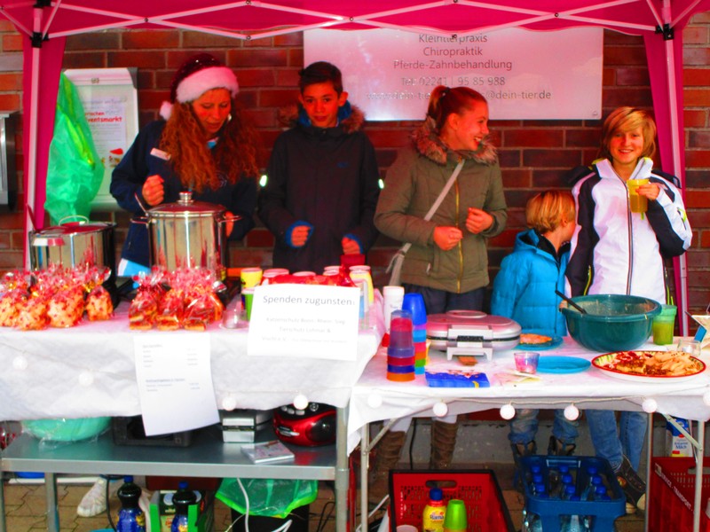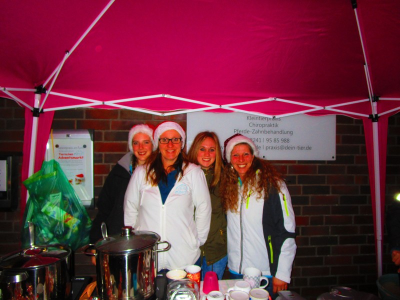 Am Ende waren es 8 Stände von sehr lieben Menschen. Die Geschäfte liefen zwar eher mäßig, dennoch kamen viele nette Menschen vorbei, tranken einen Glühwein mit und oder aßen ein paar von Sines berühmten Tier-Keksen mit uns. Es war ein wirklich schöner Tag. Dennoch: Aufgrund der vielen, vielen Arbeit, die Praxis umzubauen, wird es 2017 wohl wieder unsere "klassische" Weihnachtsfeier geben.